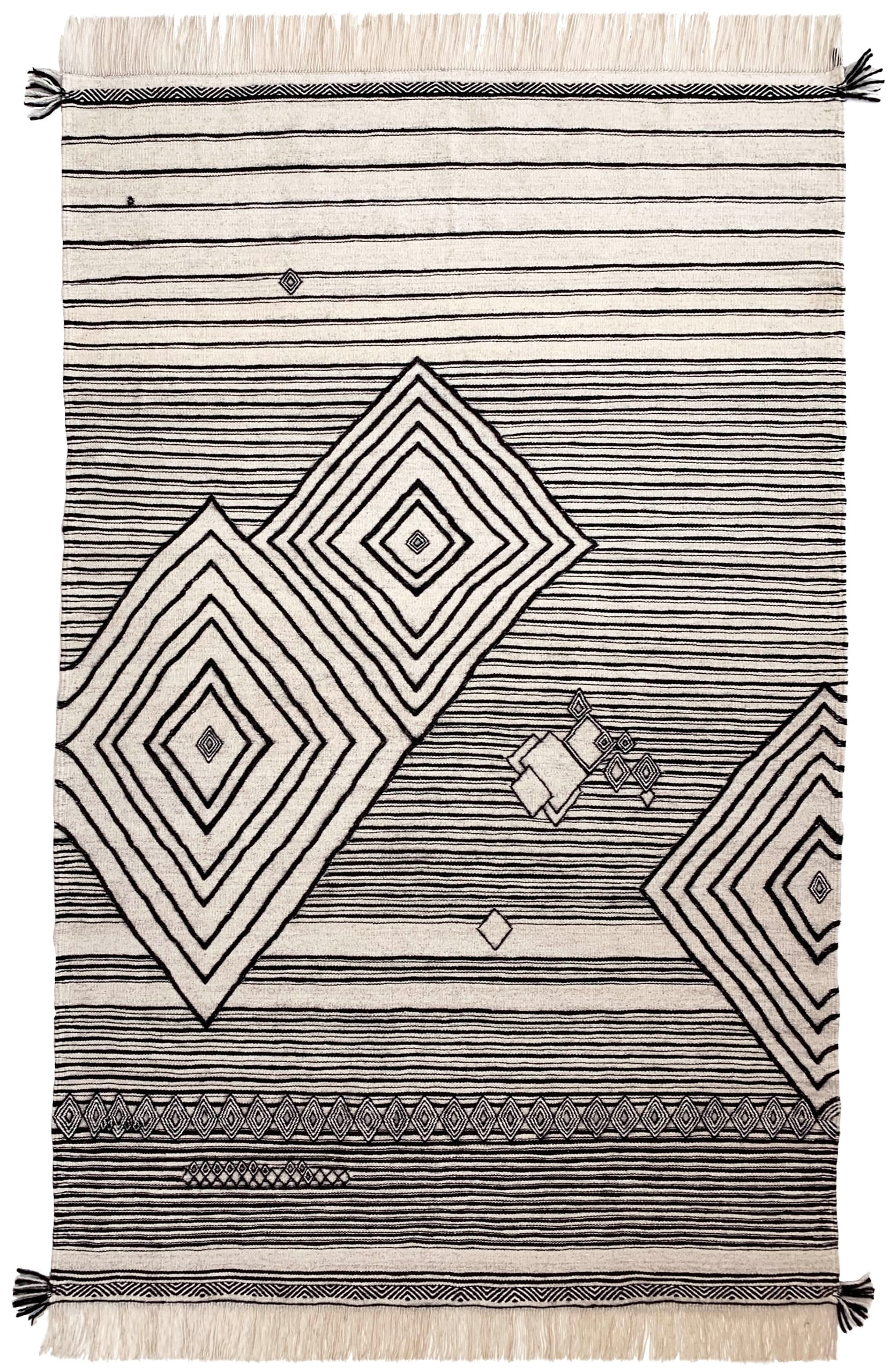 In Kooperation mit Weberinnen der Amazigh Marokkos entstehen zeitlose Teppiche. Innere Ruhe, Würde und gegenseitiger Respekt prägen die Zusammenarbeit und wirken in den textilen Unikaten weiter. Die in althergebrachter Tradition gefertigten Teppiche zeichnen sich durch Einfachheit, Reduktion und hochwertige Qualität aus. Wir verarbeiten lokale, naturbelassene Rohstoffe wie handversponnene Wolle und Pflanzen aus Wildsammlungen.