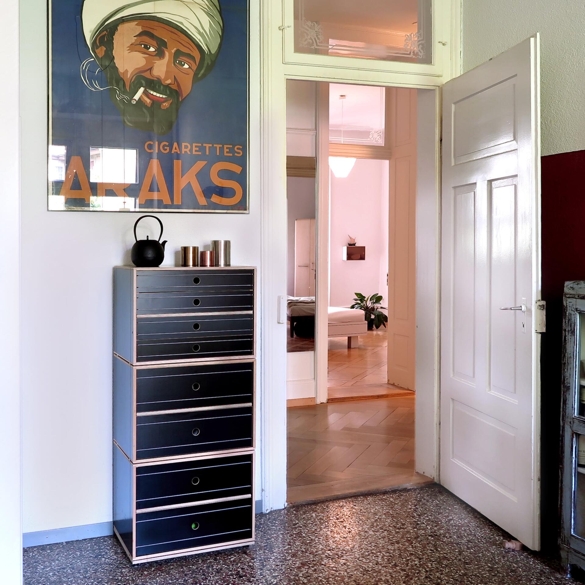 Das modulare Möbelsystem aus der Schweiz kann das. Spielerisch passt es sich unseren Anforderungen an, und lässt dabei viel Raum für Kreativität und Individualität.